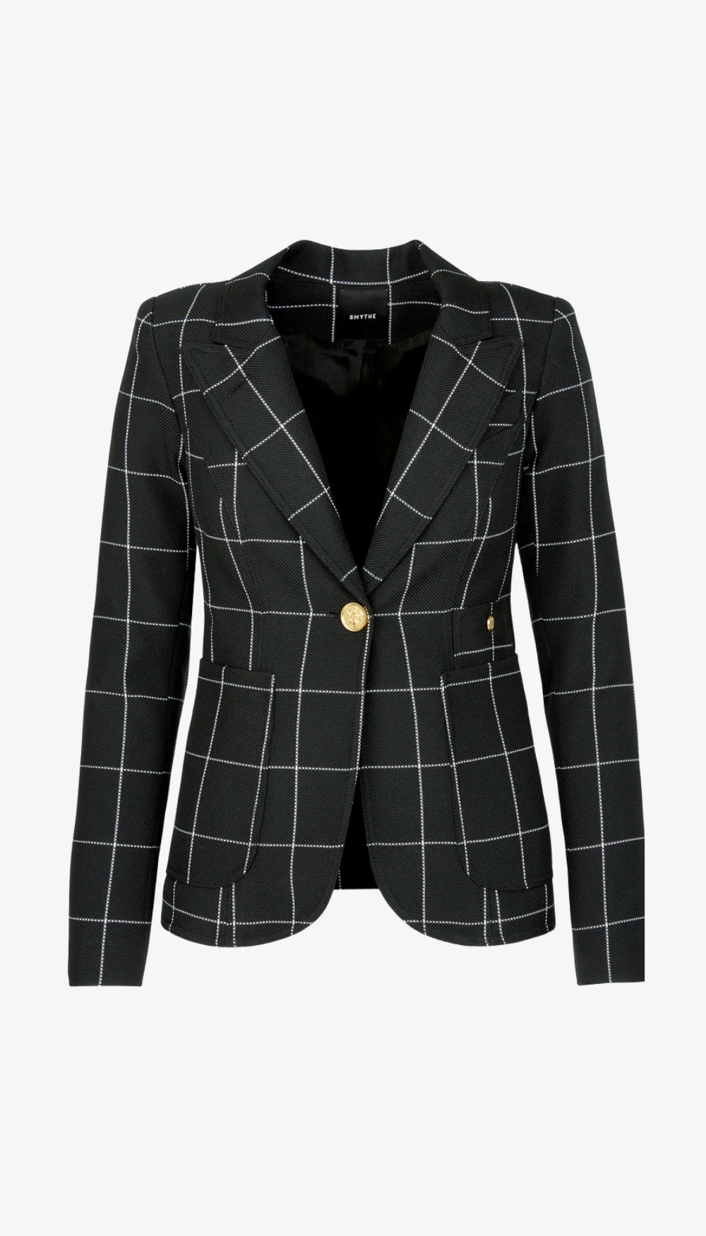 Details: Decidedly tailored, this single-breasted blazer is fabricated in a seasonless graphic windowpane and features a contrast mahogany elbow patch with brass buttons. This blazer runs small, customers may wish to size up.